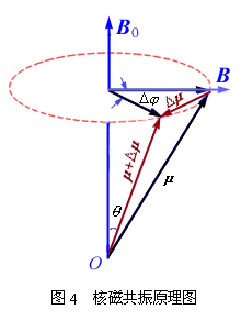 B (如图4所示),当其频率与核磁矩旋进频率一致时,便产生共振吸收;当射频场被撤去后,磁场又把这部分能量以辐射形式释放出来,这就是共振发射。这共振吸收和共振发射的过程称为核磁共振。