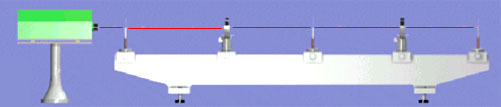 在此装置中,如果在变换面 在变换面上放置一个遮光屏,它只允许某些空间频率的光信号通过,这样所得到的象就只含有和透过的空间频率相对应的光信息,这就改变了像的质量,从而可以取得原图像信息中那些人们特别感兴趣的光学信息。放在变换面上的遮光屏实际上起了选频的作用,因而遮光屏又称为空间滤波器。低通滤波器是指只允许低频信号通过的滤波器。这时,遮光屏只在中央有个圆孔。如果遮光屏只是一个较小的不透光圆屏,则较高空间频率的光信号可以从其周围通过,因而称为高通滤波器。 空间滤波是光学信息处理的一种方式。如下图(a),滤波器是只在中央留有一条竖直缝的遮光屏,则只有中间一条竖直列的光斑发的光可以通过,因而只保留了竖直方向空间频率,于是在像平面上只出现原来水平光栅的像。同样道理,滤波器是只在中央留有一条水平缝的遮光屏,则其象平面上将形成原来竖直光栅的像(图(b))。有斜缝的滤波器,则形成斜缝光栅的像(如图(c));若将正交光栅的频谱制成“负片”,频谱图上的亮点就被抹黑,而其它处透明。这样的滤波器可以档住网格的所有信息,但部分网格上的污点能在像平面上出现,如图(d)所示。