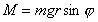 式中M为飞轮所受的对支点的外力矩。在飞轮轴为水平的情况下,质量为m的飞轮所受的外力矩、即重力矩的大小为: