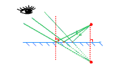 平面镜是一种反射镜,平面镜成像可由光的反射定律说明。平面镜所成的像大小和物体相等,像和物体关于平面镜成镜面对称。平面镜所成的像并非是光线真正聚散之处,称为虚像;而由光线直接照射所成的像称为实像。实像可以在屏幕上显示出来,而虚像只能在镜中见到。 |
