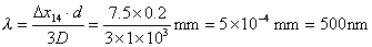 (2)根据杨氏双缝干涉条纹间距 ,将数值代入,算得