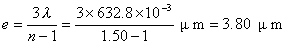 先分析 点亮暗变化一个周期时光程差的改变量,再根据 点亮暗变化3个周期时光程差改变量与所镀薄膜厚度之间的关系求解。 |