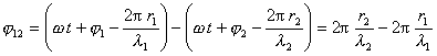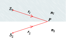 式中为这两束相干光在真空中的波长, 是由于它们在两种介质中的传播路径(波程)不同所引起的光程差,用 表示,则