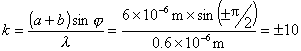本题应主要从以下两方面考虑: 1.据缺级条件,当(为整数 )时,将发生明纹主极大缺级的情况。 2.据光栅主极大公式,, ,所以 值有限。当 ,这一级在屏上实际看不到,应舍去。 3.综合以上考虑,可以算出屏上实际呈现的明纹级数。