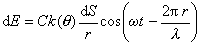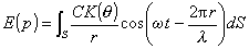 若取  时刻波阵面上各点发出的子波初相为零,则面元  在  点引起的光振动可表示为: