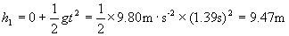 于是可求石子P到达最高点后,在2s-0.61s=1.39s时间内下降的一段距离为