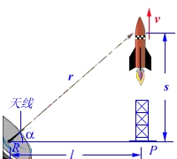 作业01-01-07-05一质点沿半径为0.1m的圆周运动,其角位移 解:(1)质点沿半径R=0.1m的圆周运动时,其运动方程为 由此得质点的角速度和线速度分别为 按题设数据,在t=2s时,质点的法向和切向的加速度分别为 (2)设加速度a与半径成 当 作业01-01-07-07 如图,当雷达的天线连续转动时,借天线发出的电磁波追踪一铅直向上飞行的火箭,已知火箭发射台P与雷达R相距为l