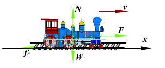 、牵引力 、阻力 (其方向与运动方向相反),各力的方向如图所示。按牛顿第二定律,火车的运动方程为