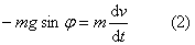 的正方向。则式(1) 的切向分量式和法向分量式分别为