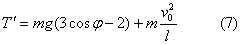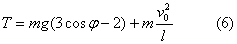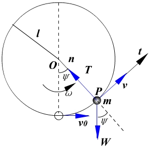 可见,小球的速度随角坐标 而改变,即小球在铅直平面内作变速圆周运动。将式(5)代入式(3),得绳子对小球的拉力为