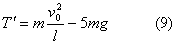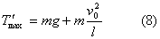 上式表明,绳子所受的拉力 亦随小球在轨道上的位置(角坐标 )而变。例如,当小球在最低点时, ,由式(7)可知,绳子所受拉力为最大,这也是小球作圆周运动时绳子至少应承受的拉力,即
