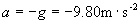 解二 先建立坐标系,令地面(塔底)为坐标原点O,x轴向上为正方向(见右图),初位置 为正, ;初速 与x轴正向一致,亦取正值, 。重力加速度方向向下,沿x轴负向,故取负值, 。在匀变速直线运动公式
