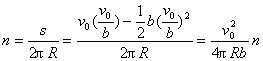 (3)由(1)中求出的v的表达式按题设可知,在 时,v=0,可见在t=0到 这段时间内,v恒为正值。因此,质点已转过的圈数n为