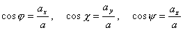 分别为加速度矢量a与x,y,z轴之间的夹角。