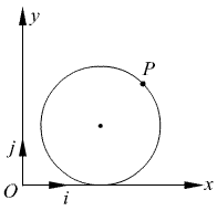 解:已知轮缘上一点P的运动方程,则P点在任一时刻的位矢为