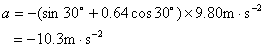 为负值,表示加速度方向与原先假定的相反,应沿 轴负向。也可将上述结果用 轴的单位矢量