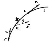 本节将从牛顿运动定律出发,导出外力对物体作功与物体动能改变的关系。如图1所示,质量为m的物体在合外力为F作用下自始点a沿曲线路径l运动到终点b,设物体在a点的速度为