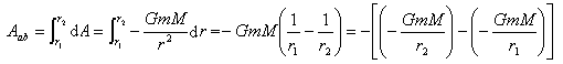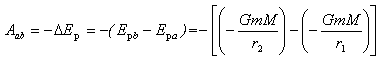 如图1,设万有引力存在于质量为m和M两物体之间,M物体相对不动,m物体在M物体的引力场中从a点沿任意路径移到b点,则万有引力对质点所作的功为