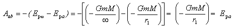不难看出,质点m从a点位置移到无限远处,引力作负功,使系统的引力势能从负值增大到零。反之,引力作正功,系统的引力势能减少。