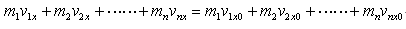 有时,当我们分析系统所受的外力时,得出系统所受外力之矢量和并不等于零,但外力在某一方向(例如x轴方向)的分量之代数和为零,即: