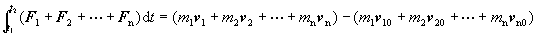 系统内各质点间相互作用的内力不会引起系统动量的改变,系统总动量的改变完全由所受外力矢量和的冲量来决定,这一结论称为系统的动量定理.即: