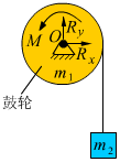 作业 01-05-03-07 如图1,一电动绞车,用绕在直径为1.2m的鼓轮上的钢丝绳(质量不计)提升一质量为的重物,鼓轮质量为,并可视作均质圆盘。若电动机传递给鼓轮的驱动外力矩为,问提升时钢丝绳的张力及轴承的支承力R。(不计轴承对轮的摩擦力矩)