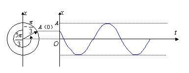 例题02-06-03-01 一质点作简谐振动,已知和初始条件 求:振动表达式,画出振动曲线。 解: 利用旋转矢量图可见,从x轴逆时针转到A,夹角为 所以 A(0)在 x 轴上的投影,就是振动曲线的起点,A逆时针旋转,投影往上增大,所以振动曲线如图所示。