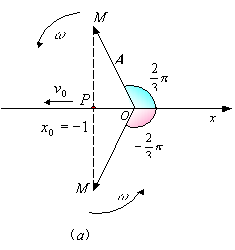 或 ,如图(a)所示。又因 ,意味着旋转矢量的终端M在x轴上的投影点P将向x轴负向运动,故旋转矢量应在第二象限。这样,在上述A与x的夹角中,我们只能取其中适合题意(初始条件)的