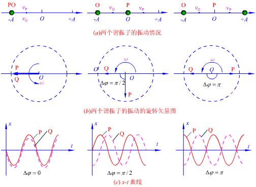 时,称两个简谐振动为同相或同步,这表示它们同来同往,同时经过平衡位置,步调永远一致。当
