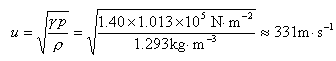 例题02-07-01-01 计算标准状态下空气中的声速。已知空气在标准状态下, =1.40,压强为密度为 解: 根据式 可算出标准状态下空气中的声速为 这个声速值与实验结果相符合。