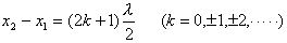 ,两质元所在处距原点O的距离之差为半波长 的奇数倍时,在这两点上的质元振动,具有相反的相位。