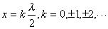 相邻两波腹间的距离为半波长.振幅的最小值(等于零)发生在 =0的点,这些点称为波节点,其坐标为