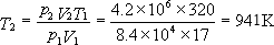 时,使压强增大到4.2×106Pa,求这时空气的温度(假设空气可视为理想气体).