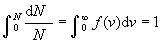 上式对所有速率间隔进行积分,将得到所有速率(0-∞)间隔的分子数占总分子数百分比的总和,这显然等于1,即