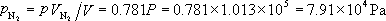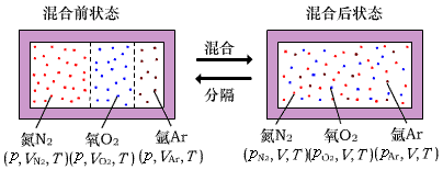 由于气体混合过程中温度T 保持不变,则当这三种气体混合成标准状态的空气后,其状态分别从