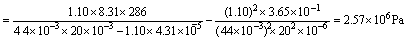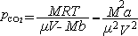 03-08-11-01 已知CO2气体范德瓦耳斯修正量 ,b = ,试用范德瓦耳斯方程计算密闭于容积为V=20 升容器内,质量M=1.10Kg,温度为13℃的 CO2 气体压强(),并与用理想气体状态方程求出的压强进行比较 解:由范德瓦耳斯方程: