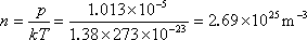 解2:在标准状态下,空气分子平均速率以及分子数密度分别为