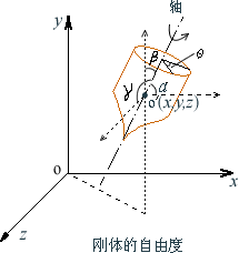 确定刚体通过质心轴的空间方位──三个方位角(α,β,γ)中只有其中两个是独立的──需两个转动自由度;另外还要确定刚体绕通过质心轴转过的角度θ──还需一个转动自由度。这样,确定刚体绕通过质心轴的转动,共有三个转动自由度 r = 3。所以,一个任意运动的刚体,总共有6个自由度,即3个平动自由度和3个转动自由度,即
