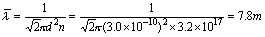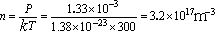 Pa,求在27℃时管内的空气分子数密度及分子平均自由程。设空气分子有效直径 d = 3.0×