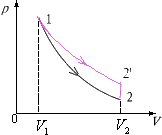 解(2):若氧气经历如图示的另一过程 1→ 2'→2, 氧气在全过程中外界对气体做功为 ≈1.44×