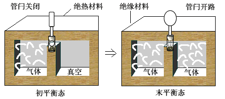 图(3) 自由膨胀。由于没有热量 Q 传递与外界做功 A',所以内能