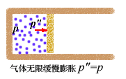 仍以气体膨胀或压缩为例,如左图所示,如果过程进行得无限缓慢,使气体在过程中的每一时刻都处于平衡态,而且没有漏气、摩擦和散热等损耗,则当过程逆向进行时,就能重复原过程的所有中间状态而恢复原状,在外界也不留下任何痕迹。即在不考虑摩擦、漏气和散热等损耗的理想情形下,准静态过程是可逆的。