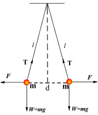 由于两球分开的距离和悬线长度相比甚小,故角 也甚小,因而 。这样,上式可写作