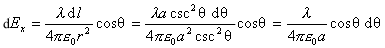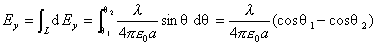 分别对上两式积分,即得带电细棒在点 的场强 的两个分量