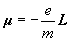 读者根据质点的角动量定义,可以自行证明:上述电子的轨道磁矩与电子的 角动量L 存在着如下的矢量关系式: