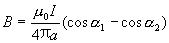 | 它们分别表示载流直导线上始端电流元和末端电流元与位矢的夹角。 |
