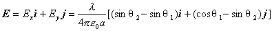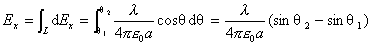分别对上两式积分,即得带电细棒在点 的场强 的两个分量