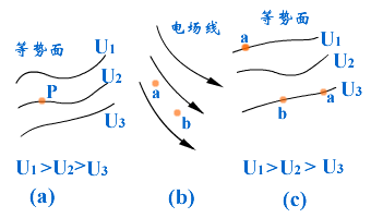 (3) 在图示的各静电场中,大致画出图(a)中P点的场强方向;判断图(b)、(c)中a、b两点的电势哪一点高? 若把负电荷-Q从点a移到点b,试判定电场力对它所作功的正负。