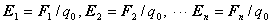 按场强定义,上式右端的各项分别是各点电荷(场源电荷)在同一点的场强,即: