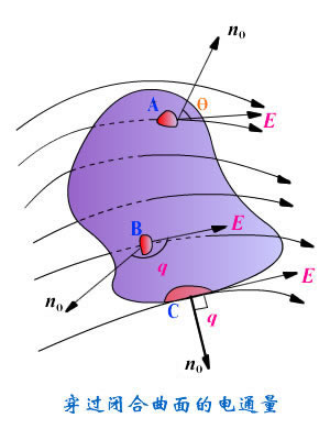 如果所考虑的是一个闭合曲面,穿过整个闭合曲面 的电通量为